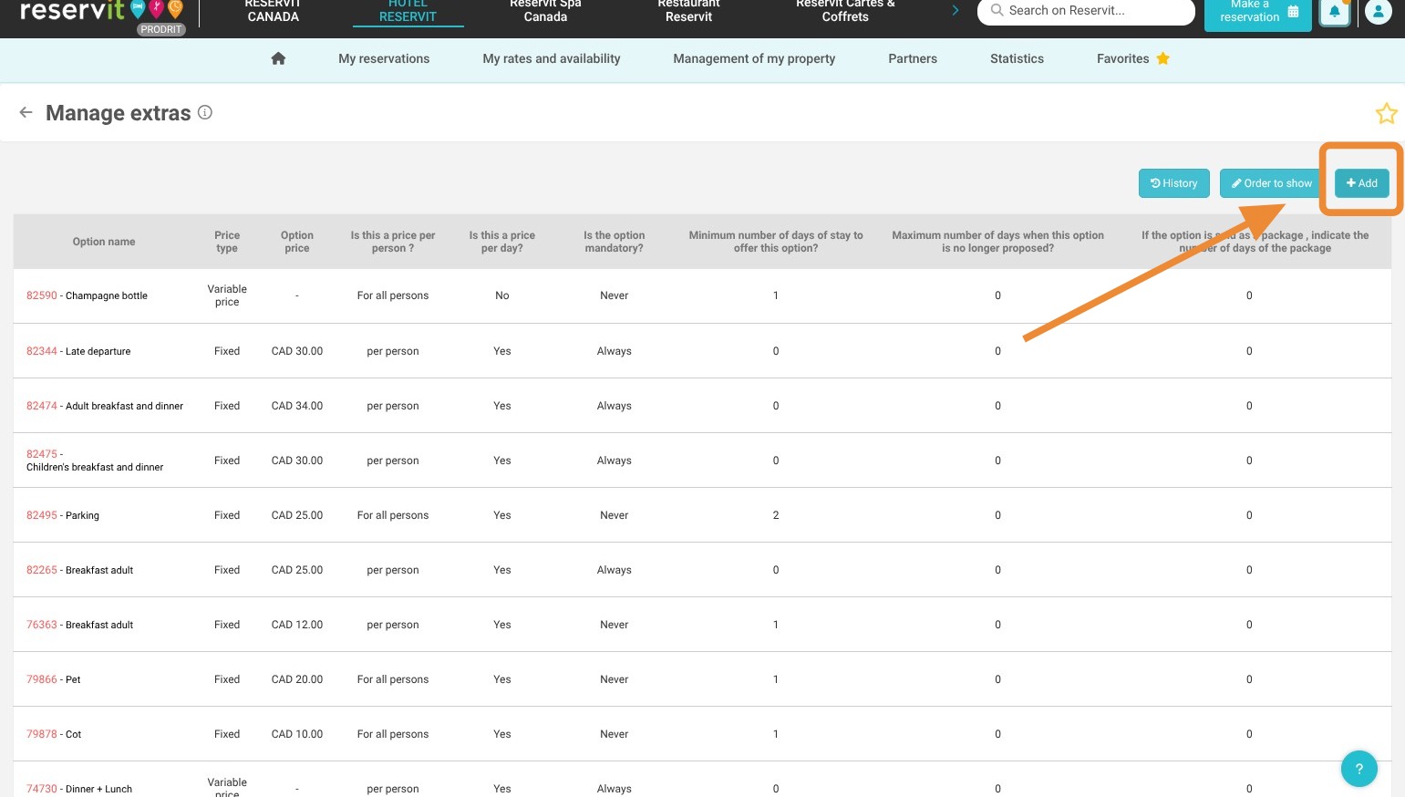 Tip! For a non-included option to be available only during certain periods, Reservit will rely on its rate to determine its availability.