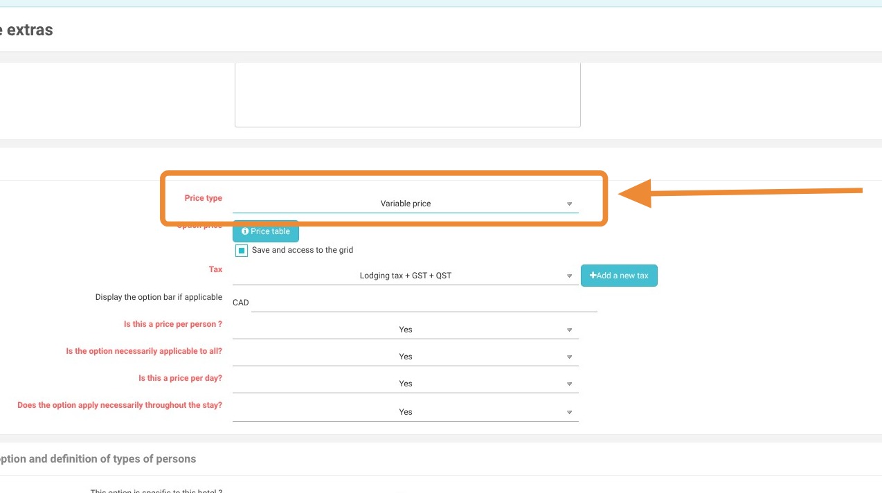 13. Impact on visibility depending on the type of stay: This setup directly controls the option's visibility on the booking engine: