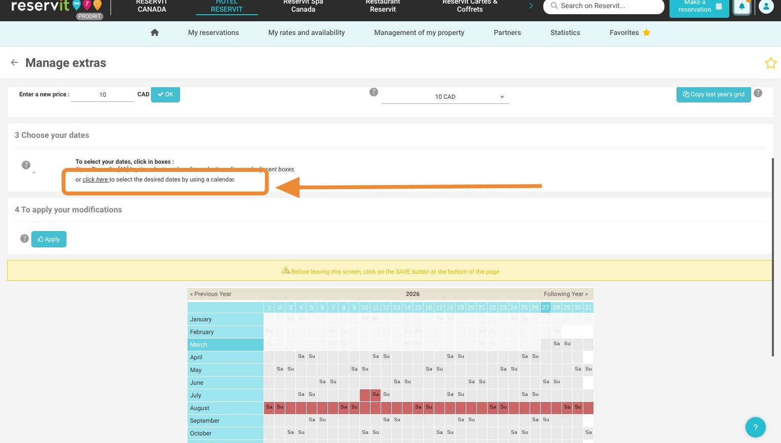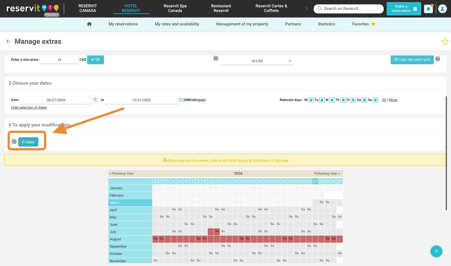 Article Summary: This guide explains how to set up a service option whose availability depends on specific periods on your calendar. You will learn how to use the "Variable Price" feature in your Reservit back-office to restrict the display of an add-on service to certain dates only. The main benefit is the ability to automate your seasonal offerings without the risk of out-of-season bookings.