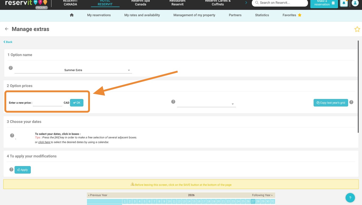 Tip: Tip! If your price varies depending on the dates, repeat the process by entering a new price in the option rate and click "OK".