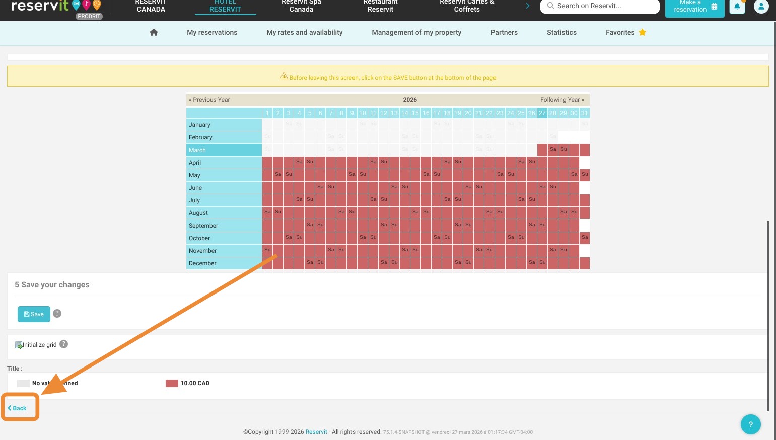 12. And click "Back". Your option is now only available on dates containing a rate.