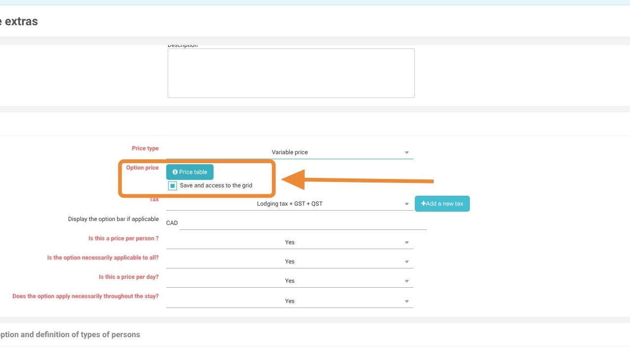 We will therefore create an option with a variable price. This way, the option will only be available when its price is configured.