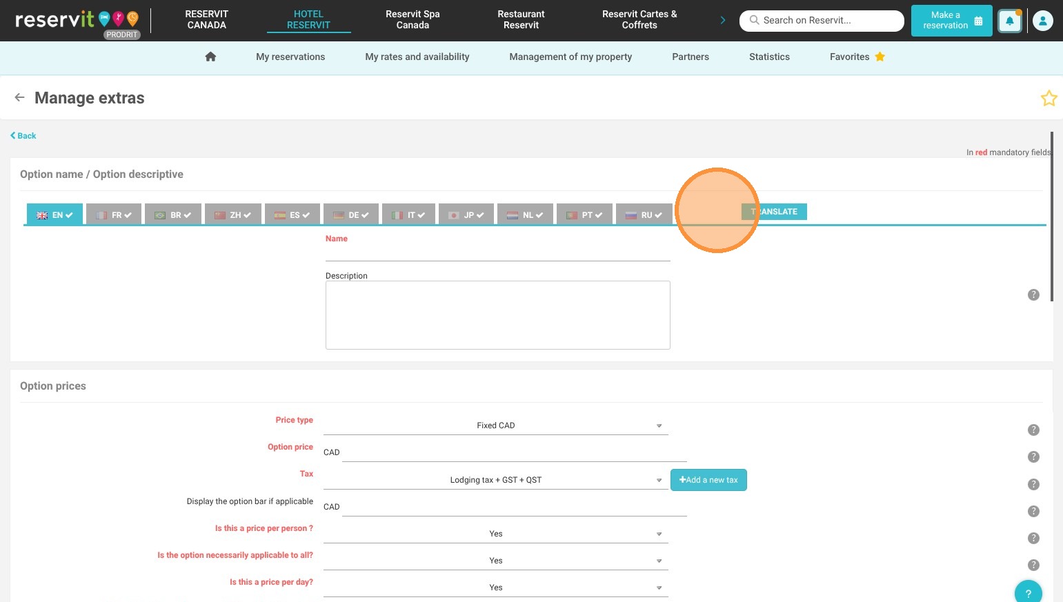 Menu access: Go to "Option management" under the "My rates and availability" tab.