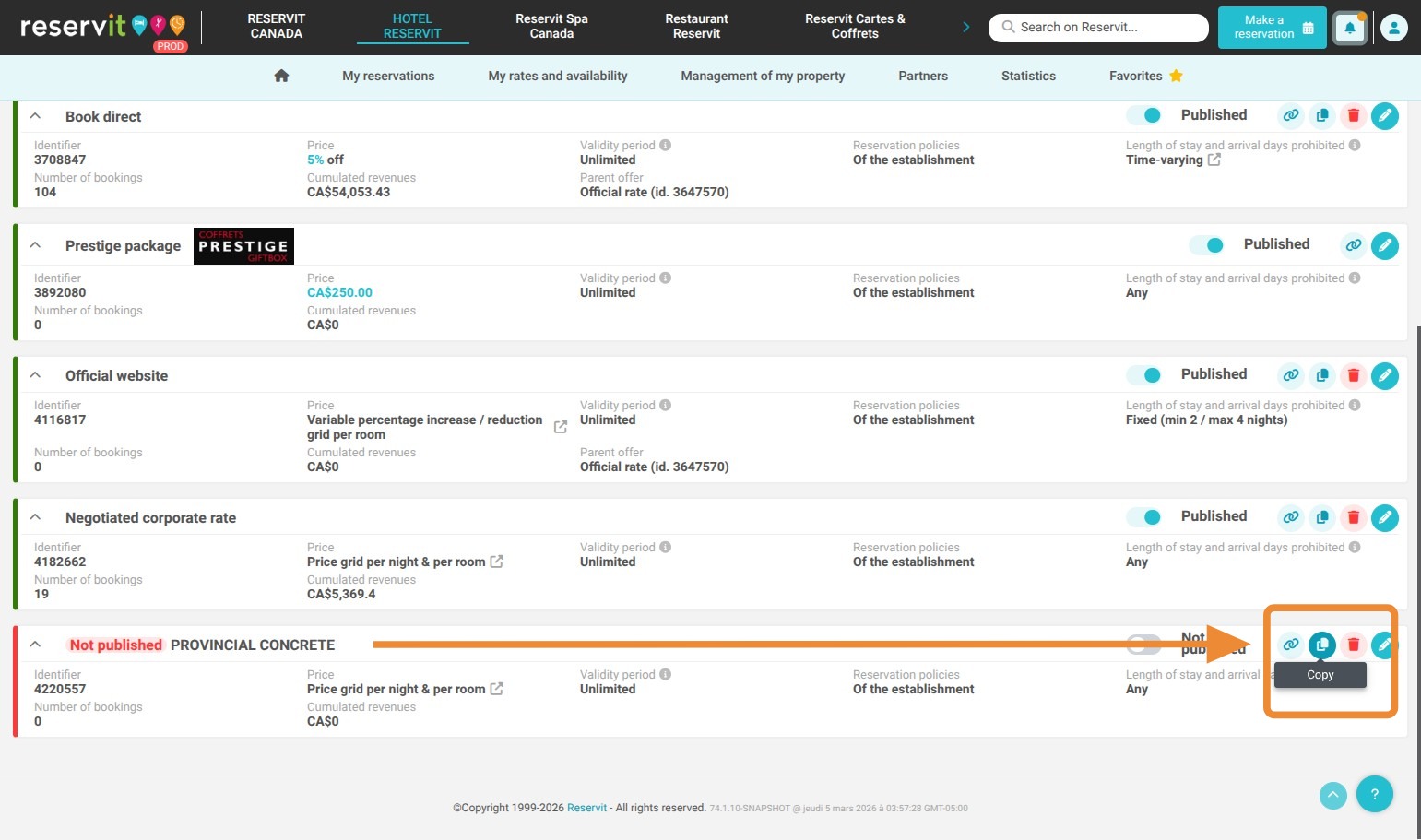 Article Summary: This tutorial provides a step-by-step guide to duplicating an existing offer or rate plan within the Reservit Accommodation interface. You will learn how to quickly replicate your successful configurations while customizing essential settings for your new sales strategies. This is the ideal method to increase operational efficiency and multiply your booking opportunities without starting from scratch.
