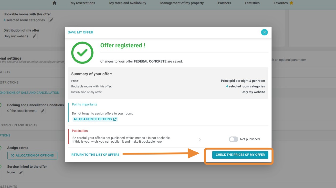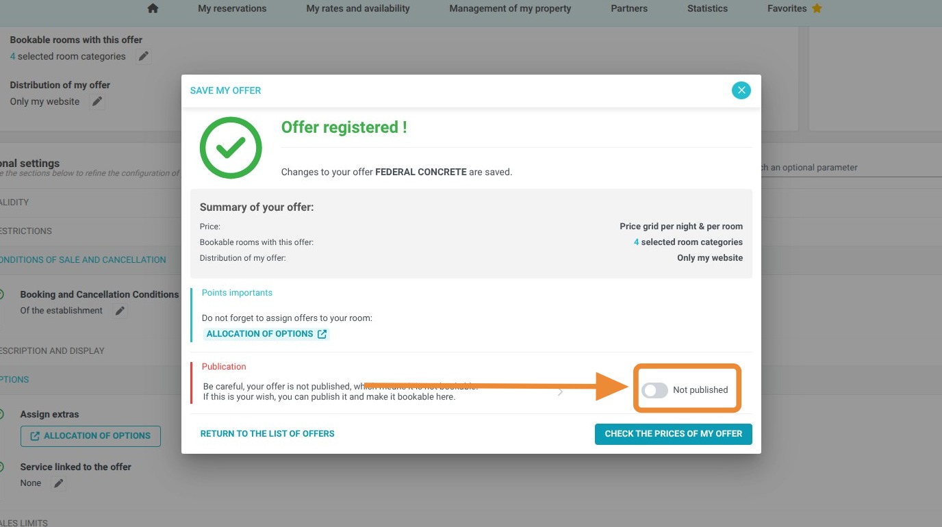 Publication: Click "Publish" to launch your new offer and make it available for booking.