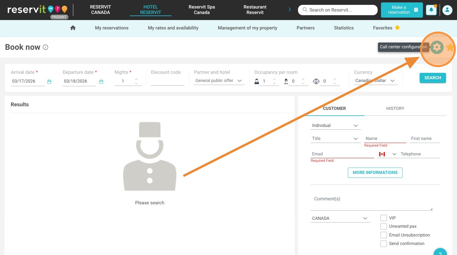 Access the Booking Module: Navigate to the "Make a reservation" section within your Reservit Lodging dashboard.