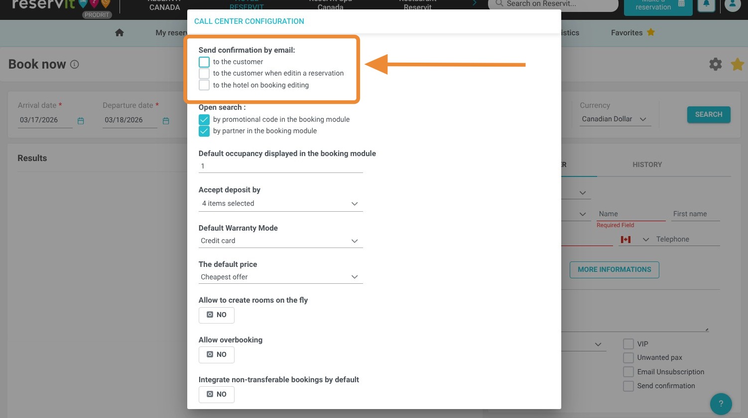 Define Delivery Preferences: Configure your default options for sending confirmation emails to guests and setting up internal notifications for the hotelier.